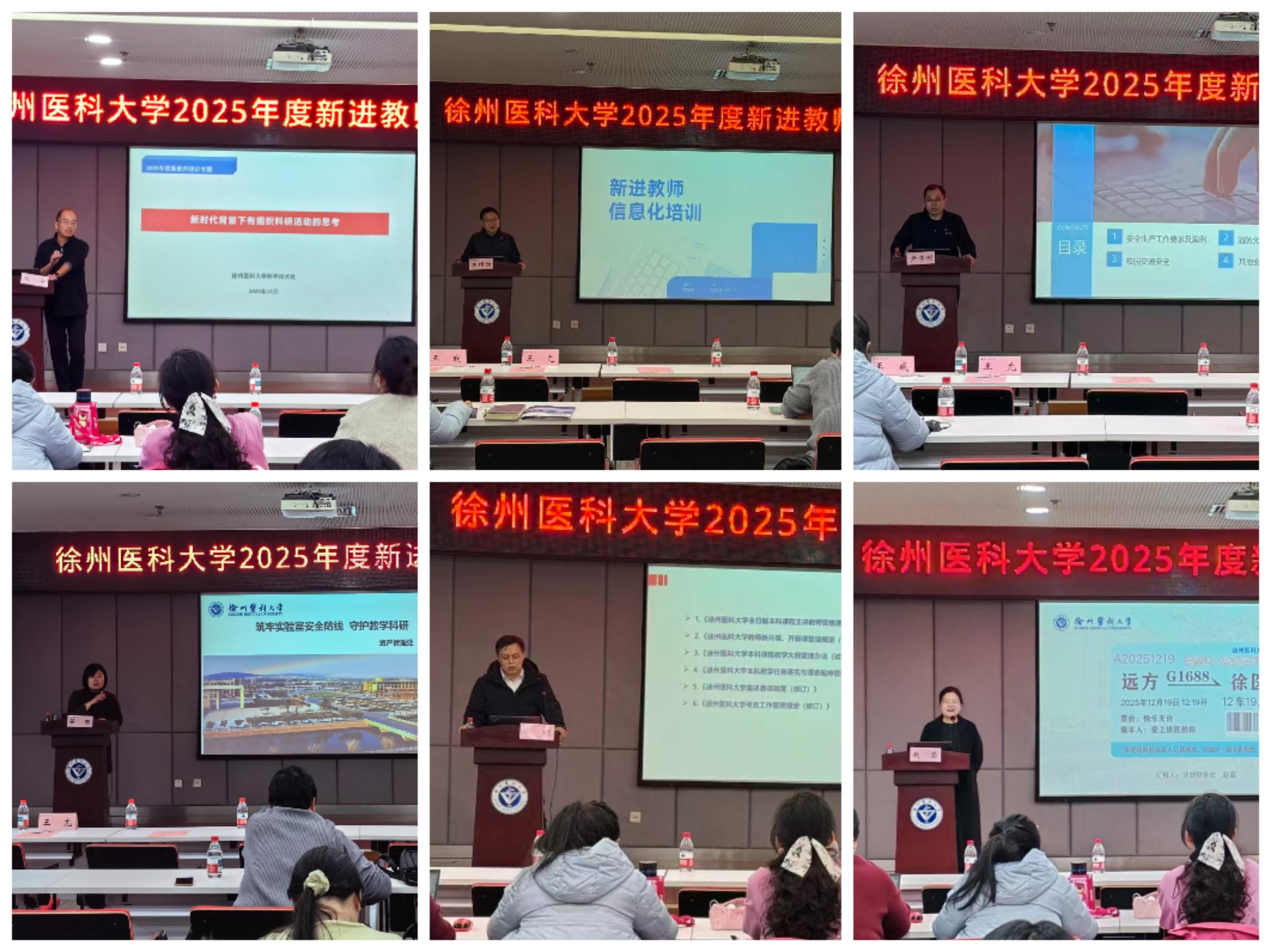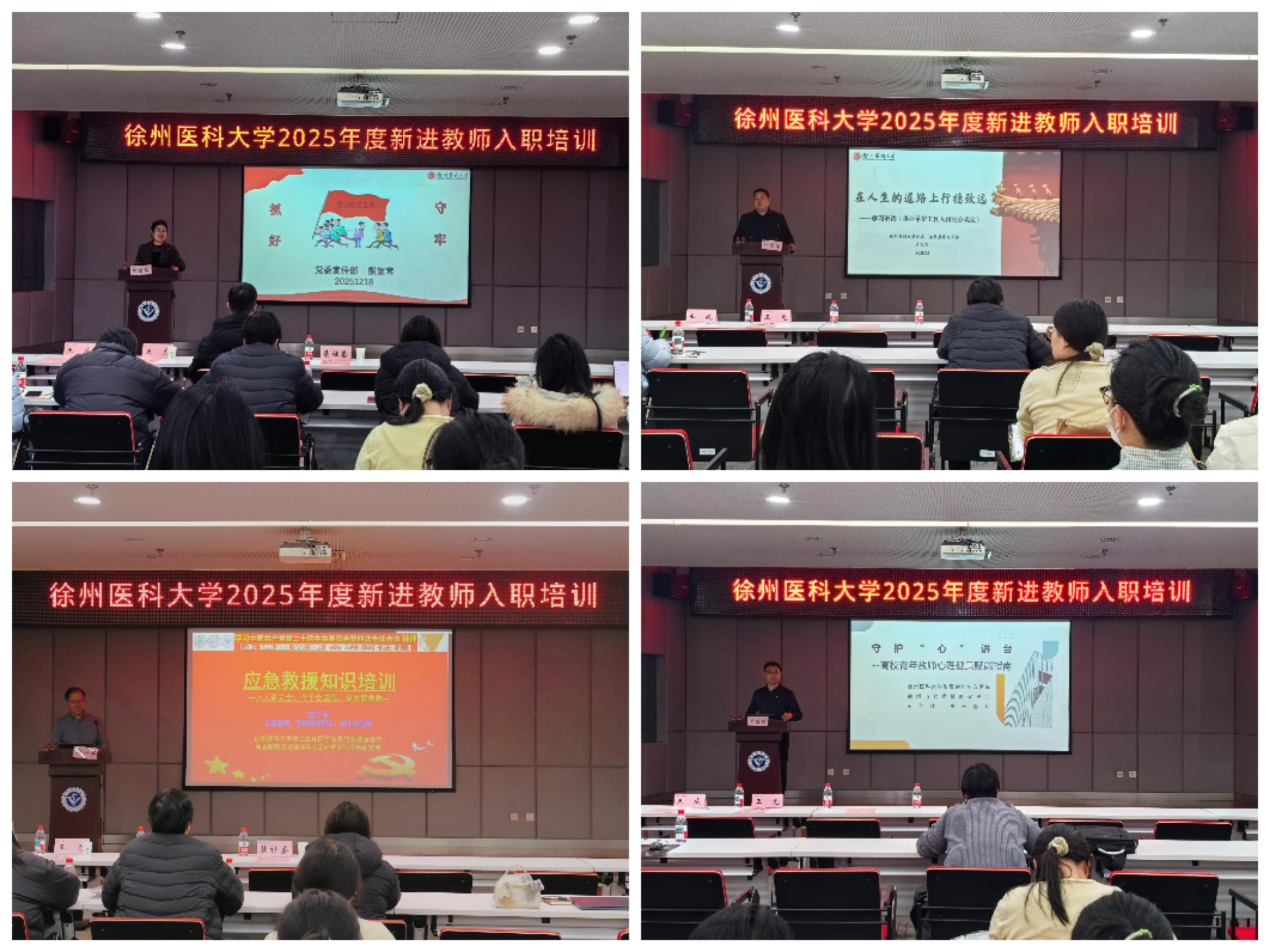 本次培训内容涵盖专题讲座、政策解读、师德涵养、实践学习等多个维度。党委常委、党委宣传部部长、社科处处长熊絮茸开展意识形态专题培训;附院急救中心赵宁军主任,校纪委、派驻监察专员办汪宏伟主任,徐州市东方人民医院王佳佳主任等分别围绕急救知识技能、《事业单位工作人员纪律准则》、高校教师心理健康赋能等进行专题培训。科技处处长丛宁、信息化处处长房维强、保卫处处长尹荣刚、教务处副处长徐明、资产管理处副处长谷雨、人事处各科室负责人、计财处秘书赵茹,分别就科技政策、信息化平台使用、校园安全、教务政策、实验室安全、人事政策和财务政策等进行了详细解读。
